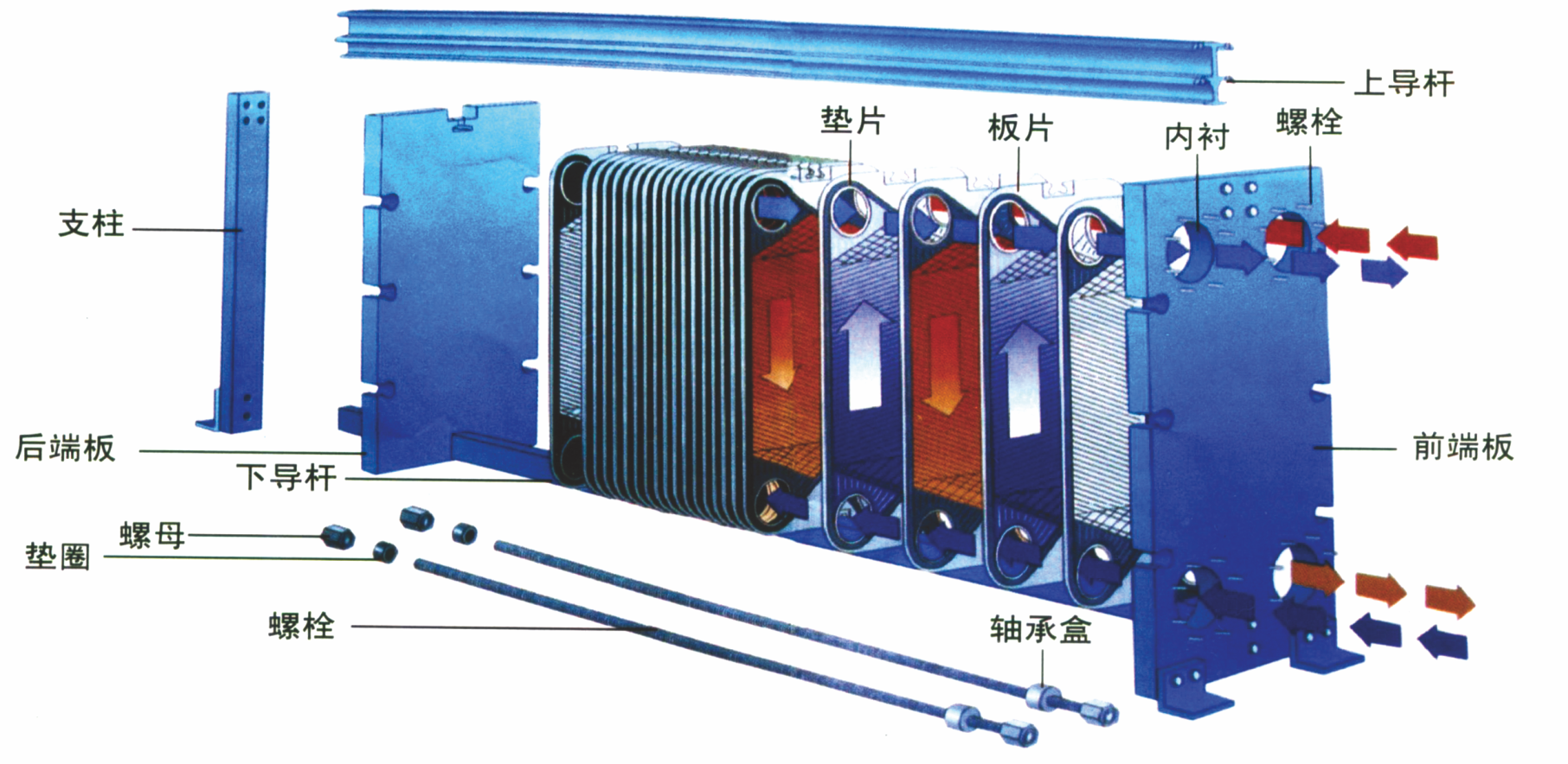 1. 核心性能與特點高傳熱效率:板片上的波紋設計使流體在低流速下也能產(chǎn)生強烈湍流,傳熱系數(shù)通常是管殼式換熱器的 3-5 倍。