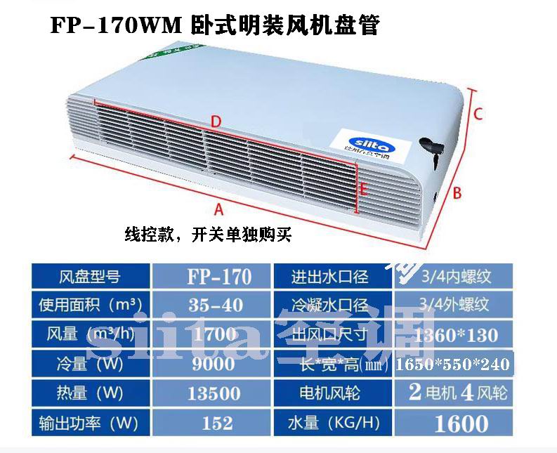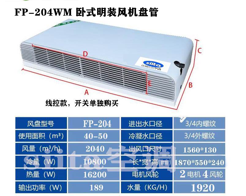 貴州普通款臥式明裝風機盤管型號,參數選型表格
