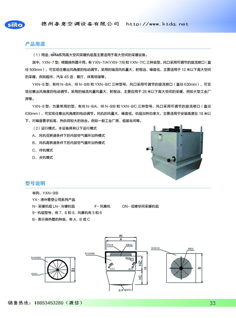 德州春意siita高大空間空調(diào)器是德州春意空調(diào)設備有限公司新研發(fā)的高大空間采暖機組@高大空間空調(diào)機組@高大空間冷暖機組。該系列產(chǎn)品涵蓋了供熱、制冷、通風、凈化等多重功能,結(jié)合綠色環(huán)保、低碳節(jié)能的設計理念,力求提升人類生活環(huán)境舒適度。